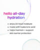• 24 timmars återfuktning formulerad med hyaluronsyra för att lämna huden mjuk och len